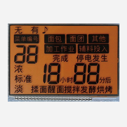 电饭煲LCD液晶屏-电炸锅lcd显示屏-面包机TN段码屏-橙色显示屏-LCD液晶显示屏生产厂家